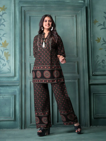 Black & Rust Rayon Ethnic Printed Co-ord Set