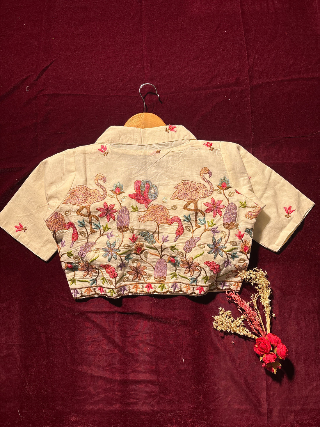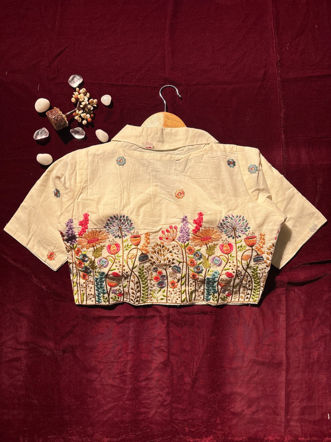 Floral Bloom Cream Blouse with Multicolor Thread Work
