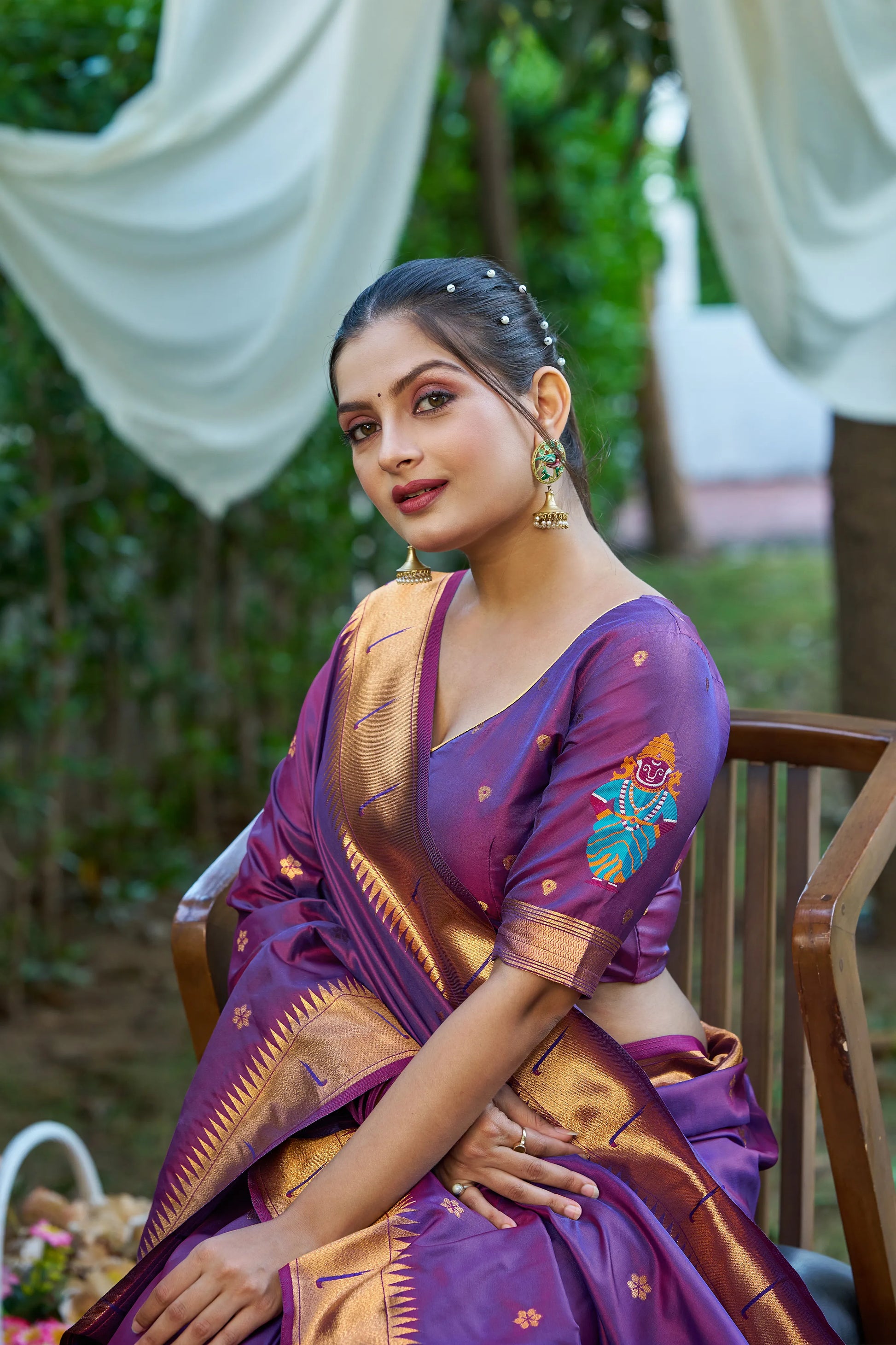 Embrocation Purple Paithani Silk Saree With Admirable Blouse Piece